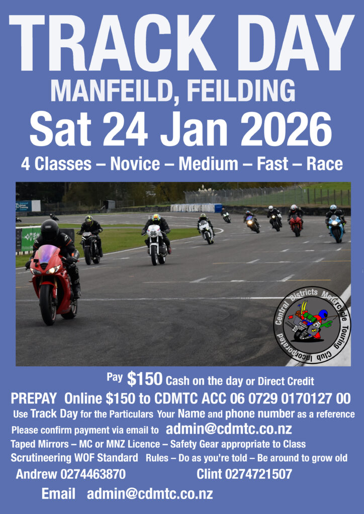 December 7th. Ride to Taupo for first round of Suzuki race series. Depart from North End BP in Feilding at 8.00 am